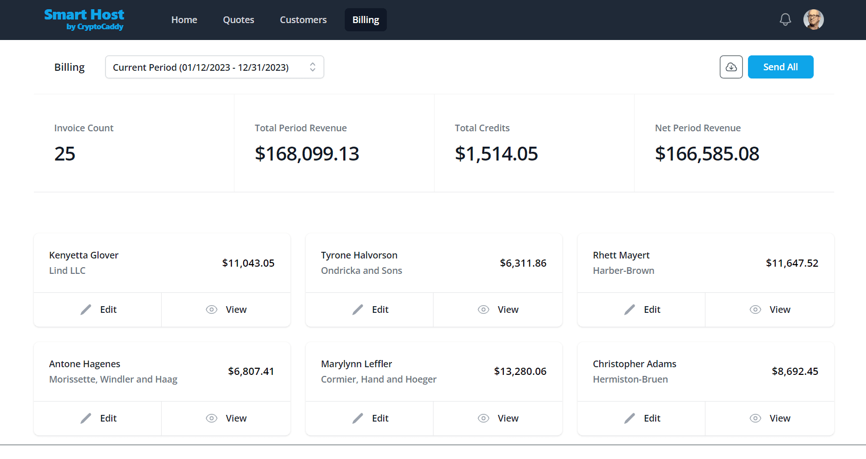 - Set up your billing schedule and let Smart Host take care of the rest. Customizable billing periods, invoice amounts, accounting system integrations, and more!